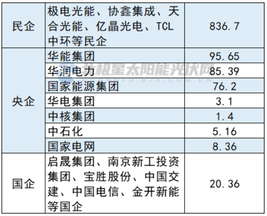从业主备案规模来看,主要分为央企、地方国企及民营光伏企业三大阵营。