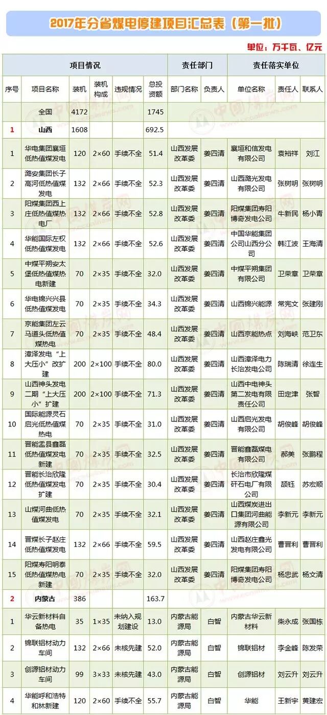 8月初,国家发改委等16部委联合印发《关于推进供给侧结构性改革防范化解煤电产能过剩风险的意见》,明确了“十三五”期间化解煤电产能过剩目标和方向。首批停建、缓建煤电项目名单,都在这里了。