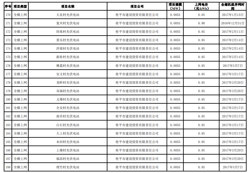 近日,广西电网公示首批可再生能源发电项目补贴清单(第三阶段),总规模超170MW。