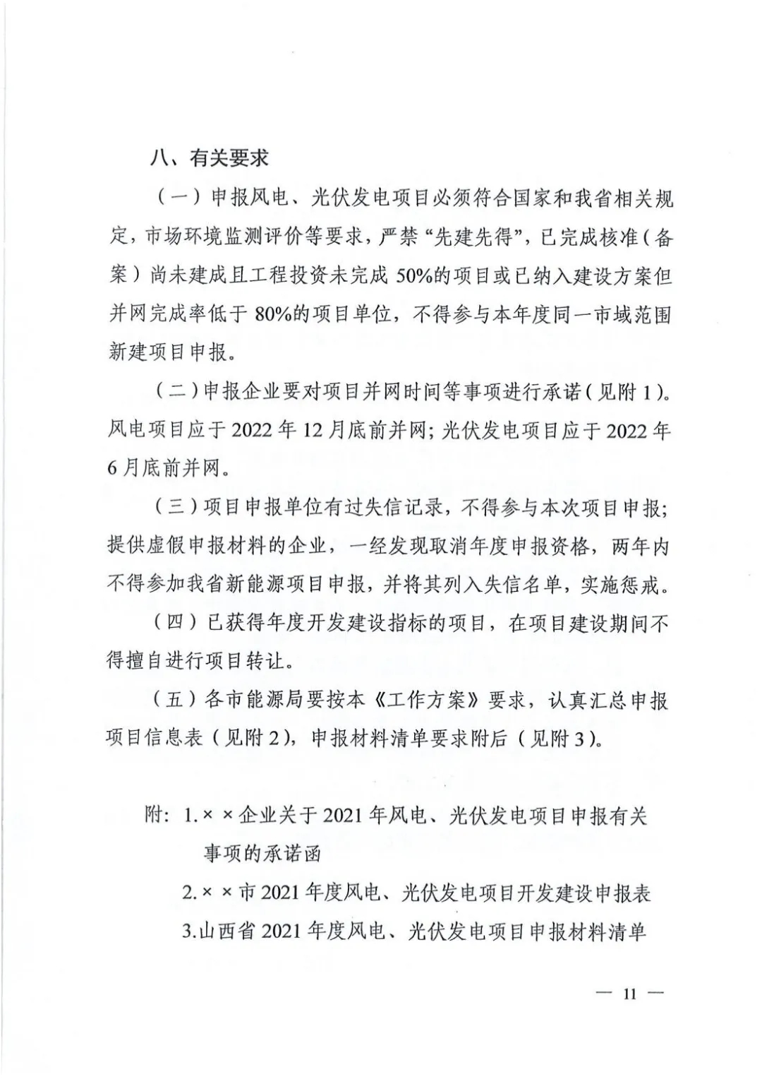 申报风电项目应于2022年12月底前并网;光伏发电项目应于2022年6月底前并网。申报材料于9月10日下午18:00前送至山西省投资咨询和发展规划院。