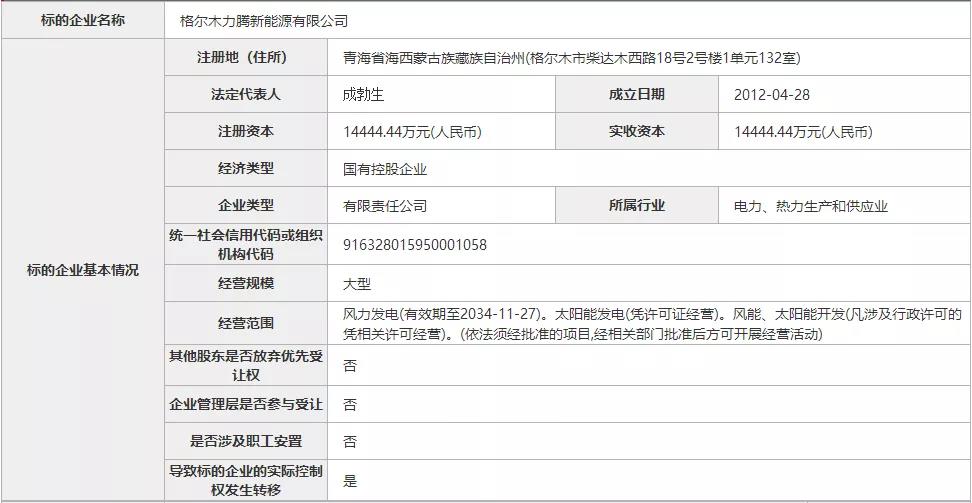 项目名称:格尔木力腾新能源有限公司90%股权及相关债权