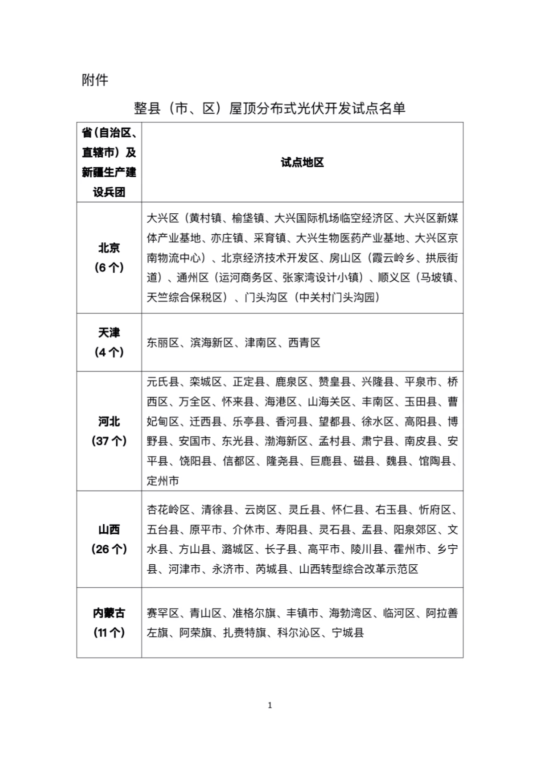 附件:整县(市、区)屋顶分布式光伏开发试点名单