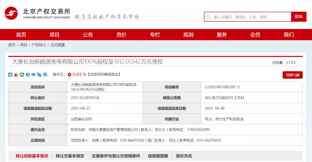 据北京产权交易所消息,大唐长治新能源发电有限公司100%股权及1812.00342万元债权、中电(商丘)热电有限公司51%股权拟挂牌转让。据(预)披露信息显示,2家企业今年前几个月业绩处于亏损状态,大唐长治新能源发电有限公司前7个月亏损94.68万元,中电(商丘)热电有限公司前8个月亏损20748.04万元。