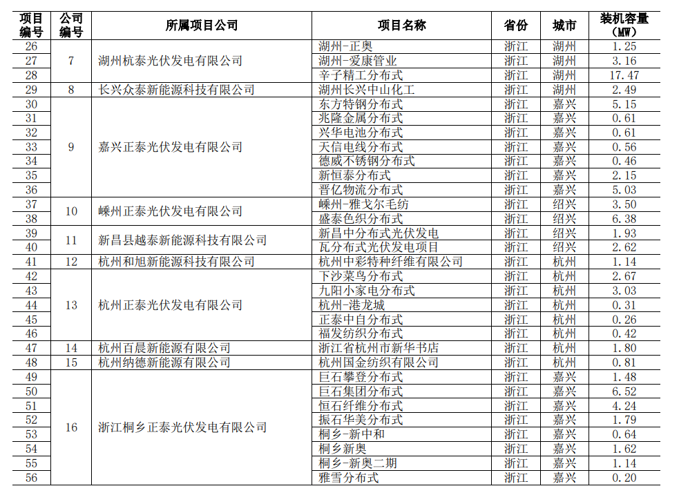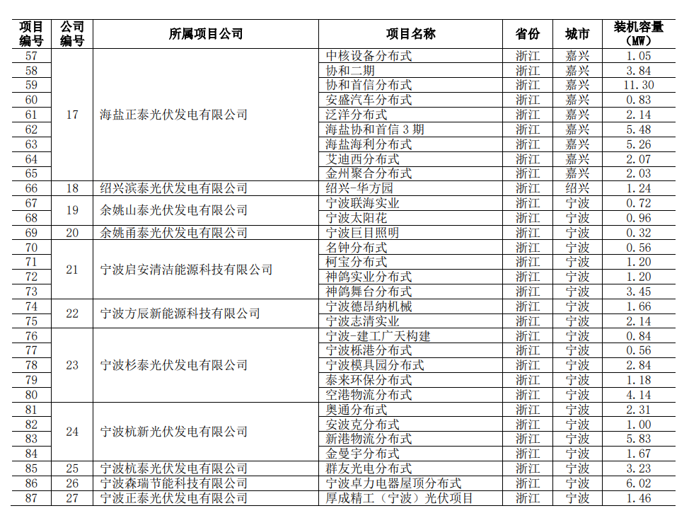 本次并购正泰新能源51.205万千瓦光伏项目包含201个分布式光伏电站,分布在浙江、江苏、上海、山东等9个省区,其中浙江省144个,合计容量37.627万千瓦,占比73.48%,浙江省外项目57个,合计容量13.578万千瓦,占比26.52%。201个分布式光伏电站中,88个项目共计24.201万千瓦列入补贴目录,占比47.26%;申报中尚未列入补贴目录项目23个,容量3.636万千瓦,占比7.10%;竞价项目21个,容量4.445万千瓦,占比8.68%;无补贴项目69个,容量18.923万千瓦,占比36.96%。
