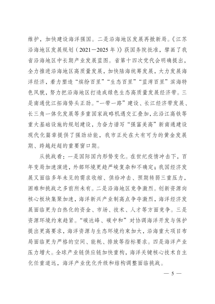 市政府办公室关于印发南通市“十四五”海洋经济发展规划的通知