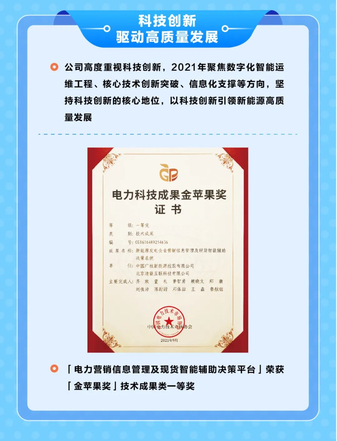 2021年,中广核新能源新增控股装机容量115.93万千瓦,其中光伏4.78万千瓦,风电100.20万千瓦;截止2021年12月31日,累计权益装机容量达到840.46万千瓦,同比增长11.3%,其中光伏113.68万千瓦,同比增长4.4%;风电384.94万千瓦,同比增长30.0%。