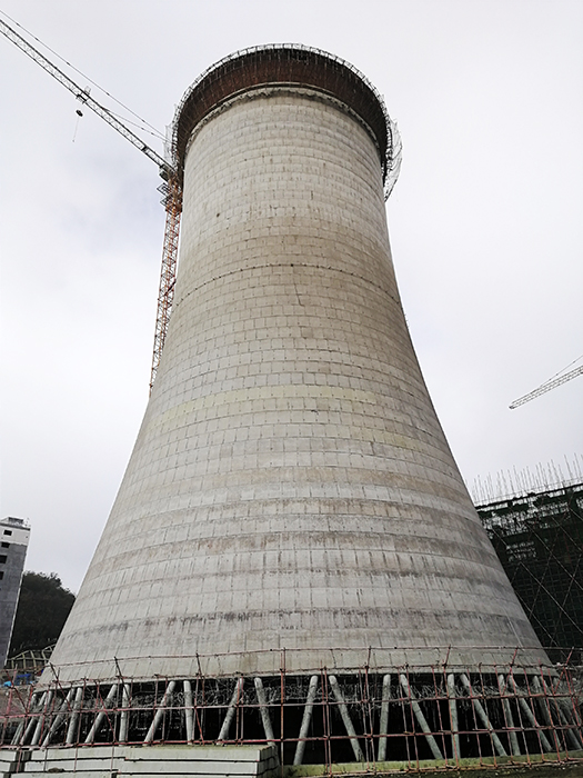 该工程规划容量为2条日处理能力为600吨的城市生活垃圾焚烧线+2台12兆瓦中温中压抽凝式汽轮发电机组,设计冷却塔为双曲线冷却塔(烟塔合一),淋水面积1200平方米,塔高71.658米,喉部标高为52.024米,筒壁为现浇钢筋混凝土结构。施工过程中,项目部克服资金不到位、施工干扰多等诸多不利因素,在确保安全、质量前提下,顺利完成冷却塔筒壁施工。下一步项目部全体人员将再接再厉,进一步提高项目履约能力,确保仁怀垃圾发电项目早日投运。