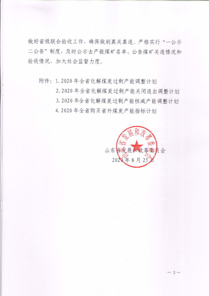 2020年山东省计划化解煤炭过剩产能 2621 万吨,其中,计划关闭退出煤矿 8 处、退出产能 806 万吨,计划核减产能煤矿 29 处、退出产能 631 万吨,计划购买省外煤炭产能指标 1184 万吨。