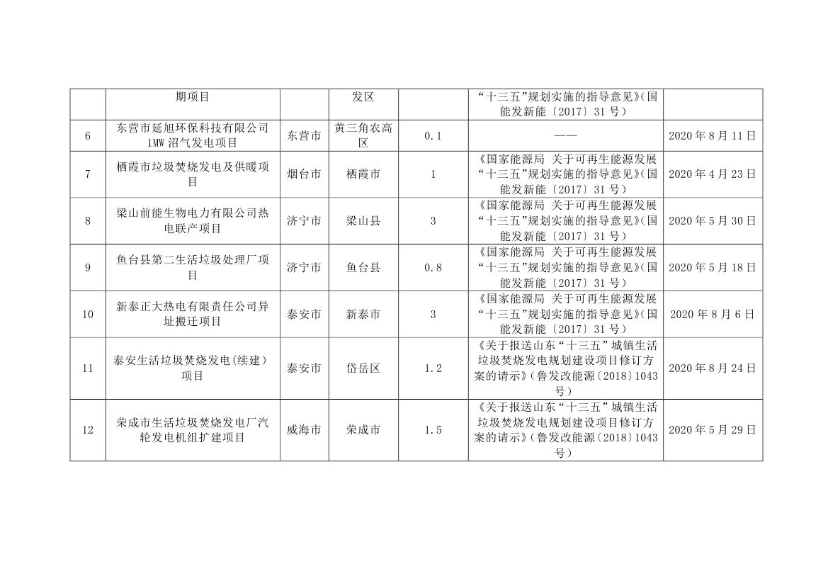 附件:山东省2020年申报中央补贴生物质发电项目(第一批)名单.pdf