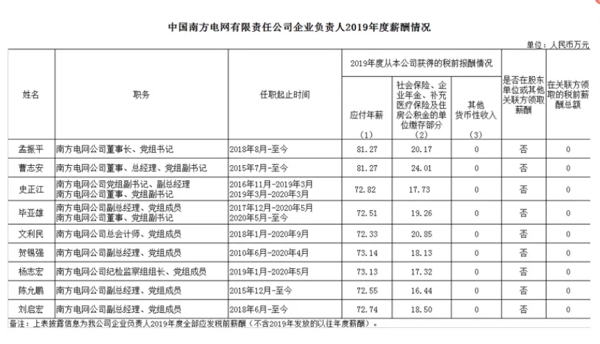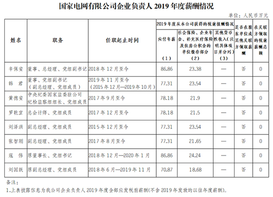 近日,国家电网、南方电网、华能集团、国家能源集团、中广核、中国能建、中国电建等能源电力央企发布了企业负责人2019年度薪酬情况。