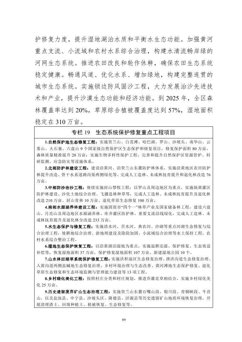 2021年2月26日,宁夏印发宁夏回族自治区国民经济和社会发展第十四个五年规划和2035年远景目标纲要,其中指出: