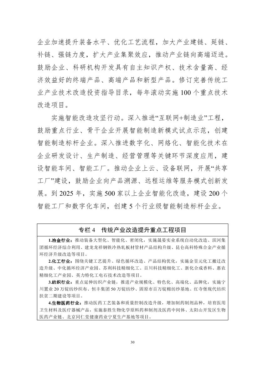 清洁能源:建设1400万千瓦光伏和450万千瓦风电项目、宁东太阳能电解制氢储能及应用示范工程;实施隆基乐叶科技年产3GW单晶电池、矽盛光电4GW单晶硅棒硅片、中车株洲风机装备制造、威力传动高精密传动设备、金晶科技太阳能光伏轻质面板、日盛高新氢能源综合利用等项目。