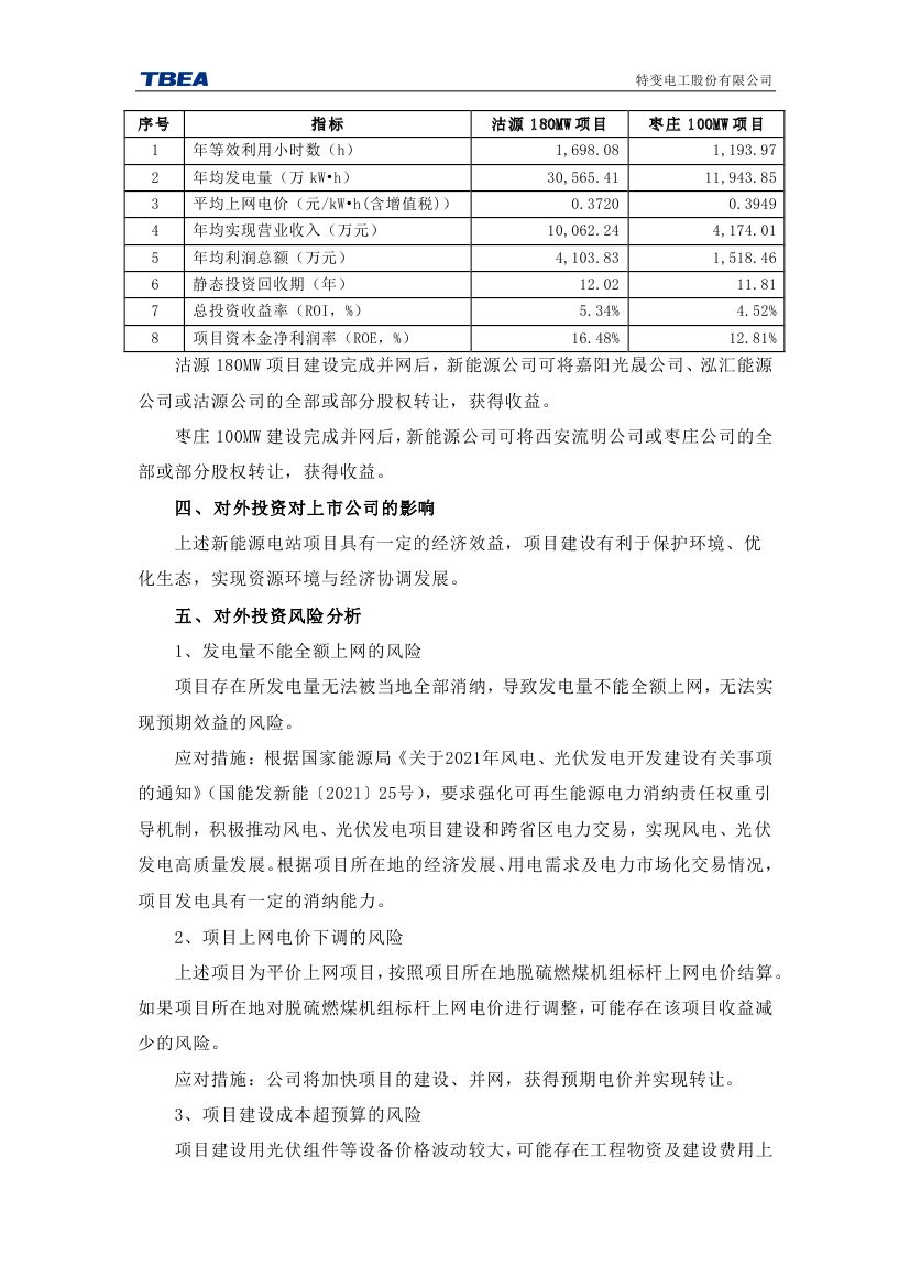据特变电工测算,沽源180MW项目年均利润总额4104万元,枣庄100MW项目年均利润总额1518万元。特变电工称,新能源电站项目具有一定经济效益,有利于保护环境、优化生态。