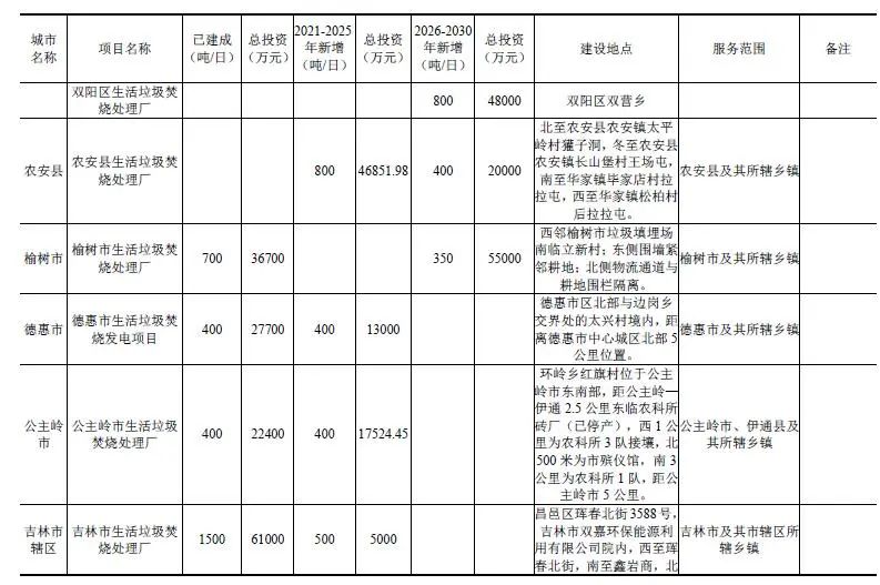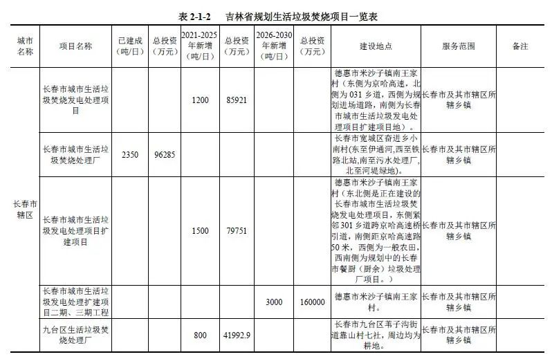 日前,吉林省发改委发布吉林省生活垃圾焚烧发电中长期专项规划(2021—2030年)环境影响评价第二次信息公告。规划征求意见稿显示,截止到2020年底,吉林省已投产的生活垃圾焚烧发电项目共11个。2021年-2030年吉林省新建、扩建生活垃圾焚烧处理厂32座,新增生活垃圾焚烧处理能力20950吨/日。