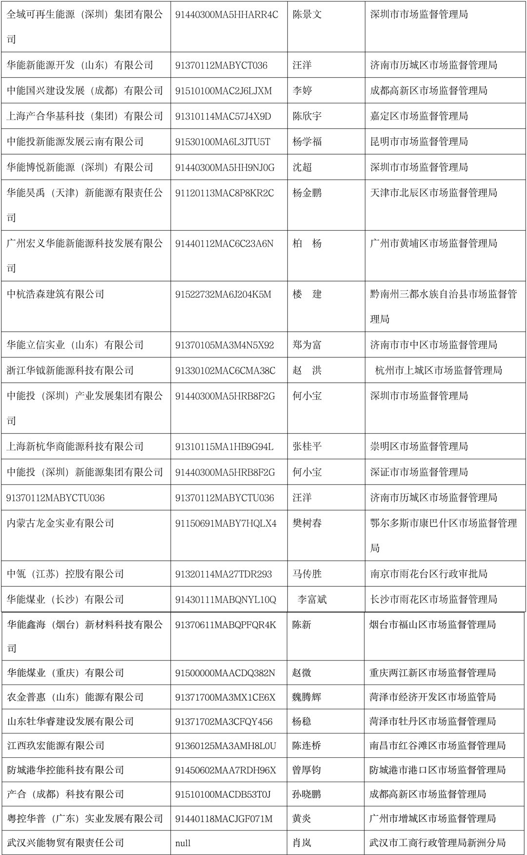 假冒中国华能企业信息名单