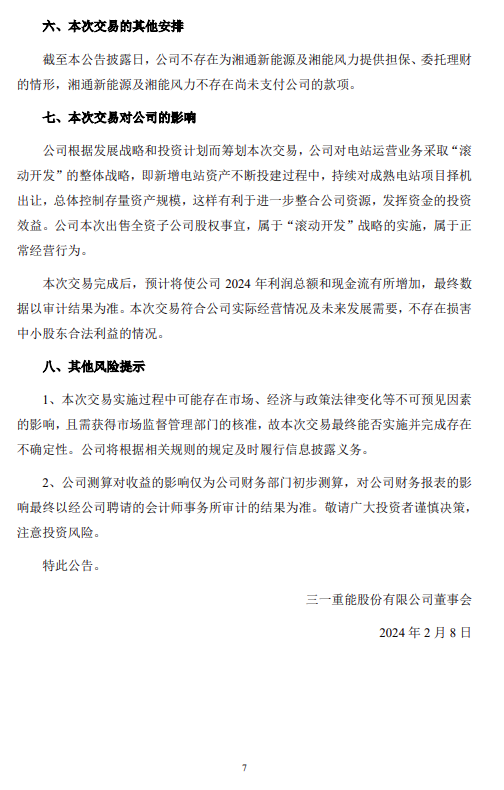 近日,三一重能发布关于出售全资子公司股权的公告。