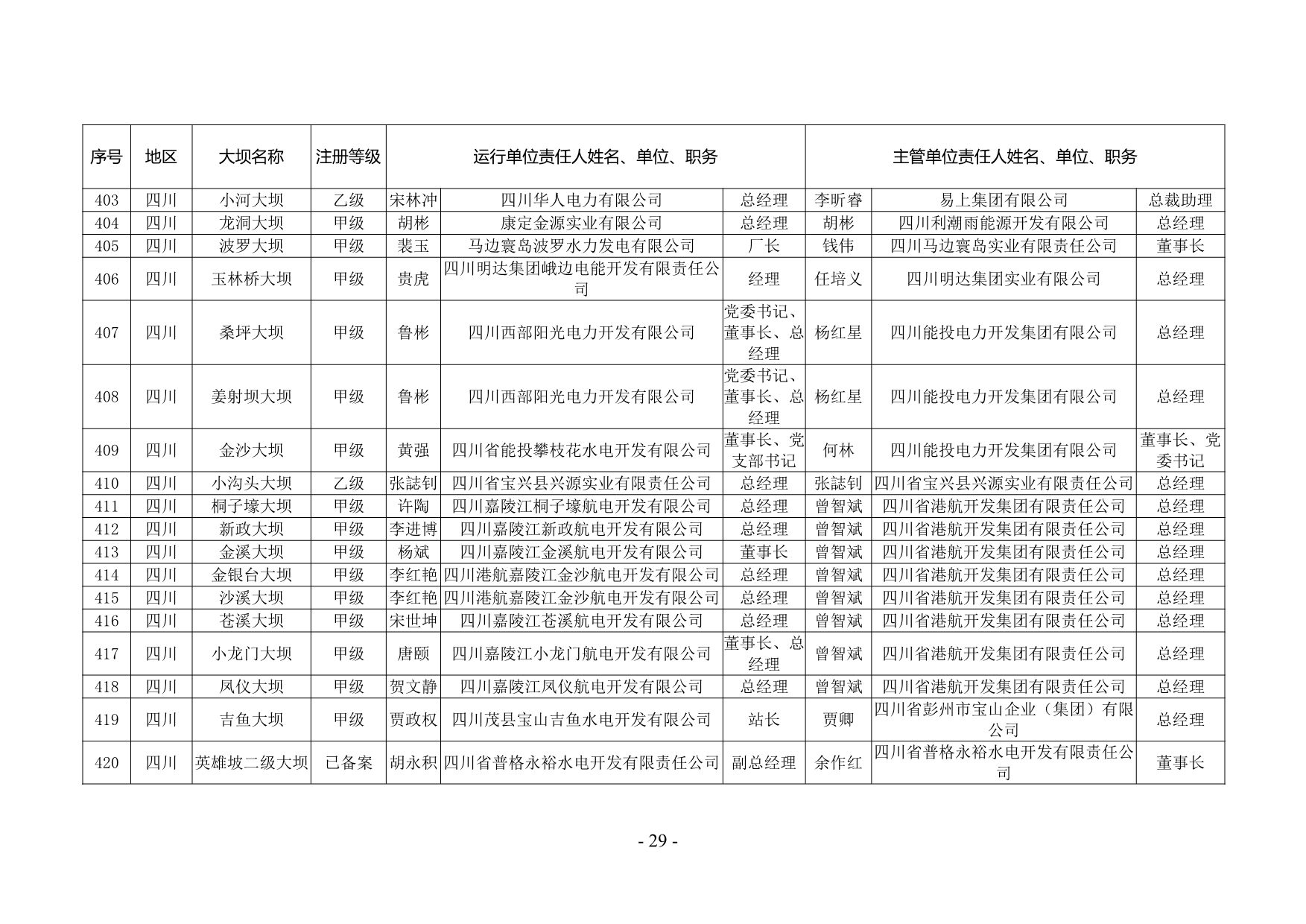 附件:2024年全国注册登记和备案水电站大坝运行单位和主管单位安全责任人名单
