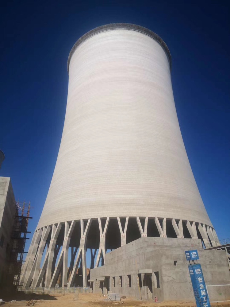 4号间冷塔高205米,中心标高32.5米,环梁壳体厚度2.15米,塔体为双曲线钢筋混凝土薄壳结构,筒壁支撑结构为40对X支柱,X柱为现浇钢筋混凝土结构。自今年4月复工以来,神头项目部全体员工在项目经理王树彬的带领下,切实做好疫情防控,努力降低疫情对现场工作的影响,全力推进项目施工,在保证安全的前提下,克服重重困难,保质保量按时完成每一个施工节点,顺利结顶的间冷塔筒壁曲线顺畅、平整光洁、颜色一致,获得了业主单位的高度赞扬。