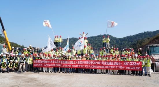 1月31日,中国电建老挝南屯1水电站项目再传捷报:碾压混凝土浇筑月纪录达361333立方米,创下同类工程月浇筑量的世界第一。