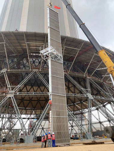 4月5日9时28分,江苏省电力建设第三工程有限公司承接的内蒙古鄂尔多斯市鄂托克前旗国电双维工程2×1000兆瓦工程1号机组钢结构间冷塔冷却三角开始吊装,拉开间冷塔安装序幕。