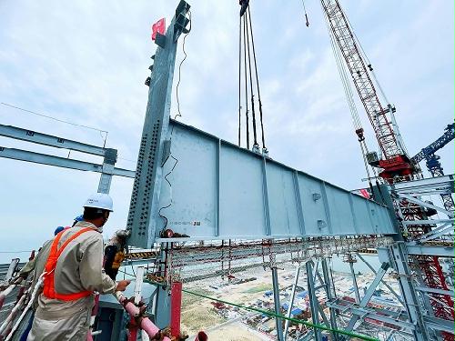4月29日10时28分,江苏省电力建设第三工程有限公司承建的国家能源集团广投北海电厂1号锅炉首根大板梁顺利吊装就位在122米高的炉架上,标志着该工程锅炉钢结构安装进入最后冲刺阶段,为下阶段锅炉受热面吊装创造了条件。