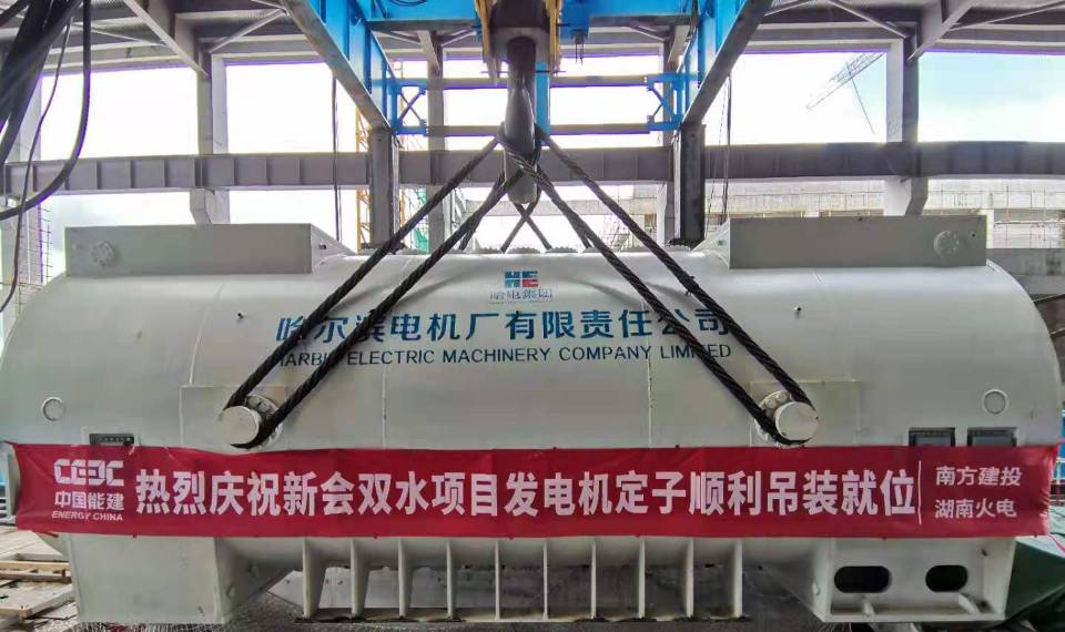 7月12日,广东新会双水“上大压小”600MW热电联产项目发电机定子顺利吊装就位。