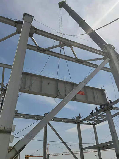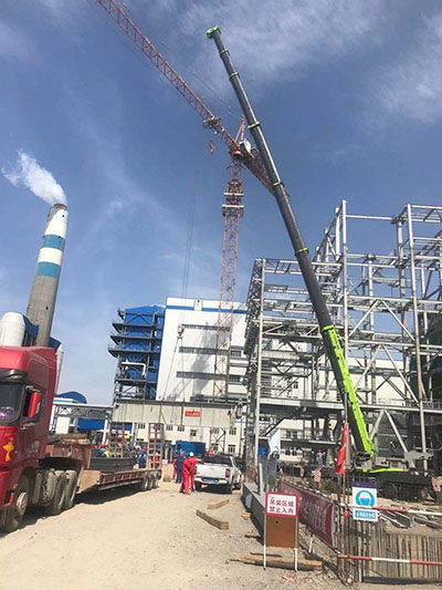 由迪尔集团有限公司第三公司承建的哈密润达嘉能发电有限公司洁能综合利用2×135MW发电项目,1#锅炉大板梁MB-4(23.7吨)于2021年7月8日上午12时10分顺利吊装就位。