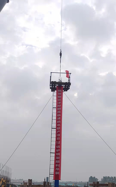 2021年9月9日上午7时58分,由迪尔集团有限公司南昌办事处承建的宿迁沭阳-桐昆临港供热片区热电联产项目一期一阶段-安装标段(2×270t/h+1×120t/h高温超高压循环流化床锅炉+1x6MW汽轮拖动空压机组)1#锅炉第一根钢架吊装就位,标志着本工程正式开工。