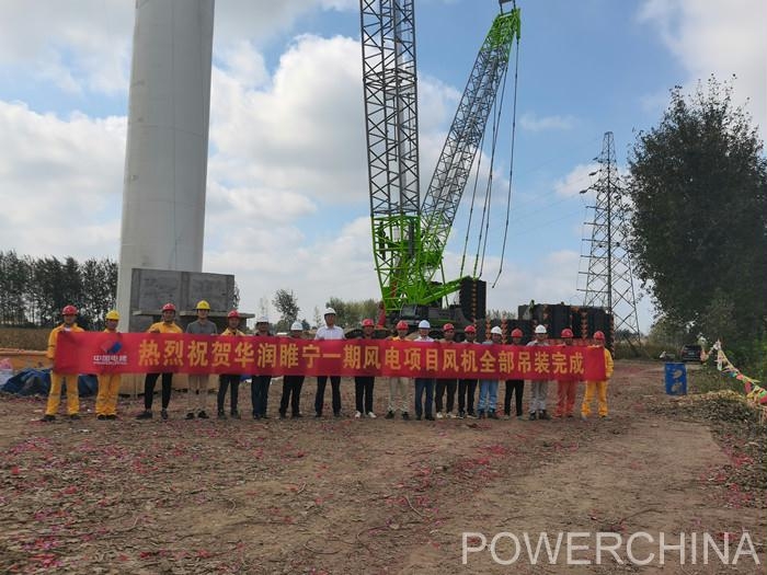 9月27日11点56分,随着最后一台风机叶轮准确地与机舱吊装对接成功,华润睢宁一期42.5兆瓦风电项目风机全部吊装完成。