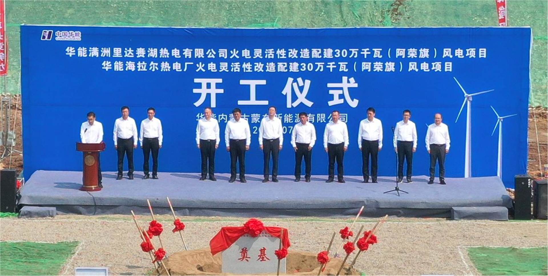 7月12日上午,由中国能建华能海拉尔热电厂火电灵活性改造配建30万千瓦(阿荣旗)风电项目、满洲里达赉湖热电有限公司火电灵活性改造配建30万千瓦(阿荣旗)风电项目在达赉湖灵改220千伏升压站举行开工仪式。