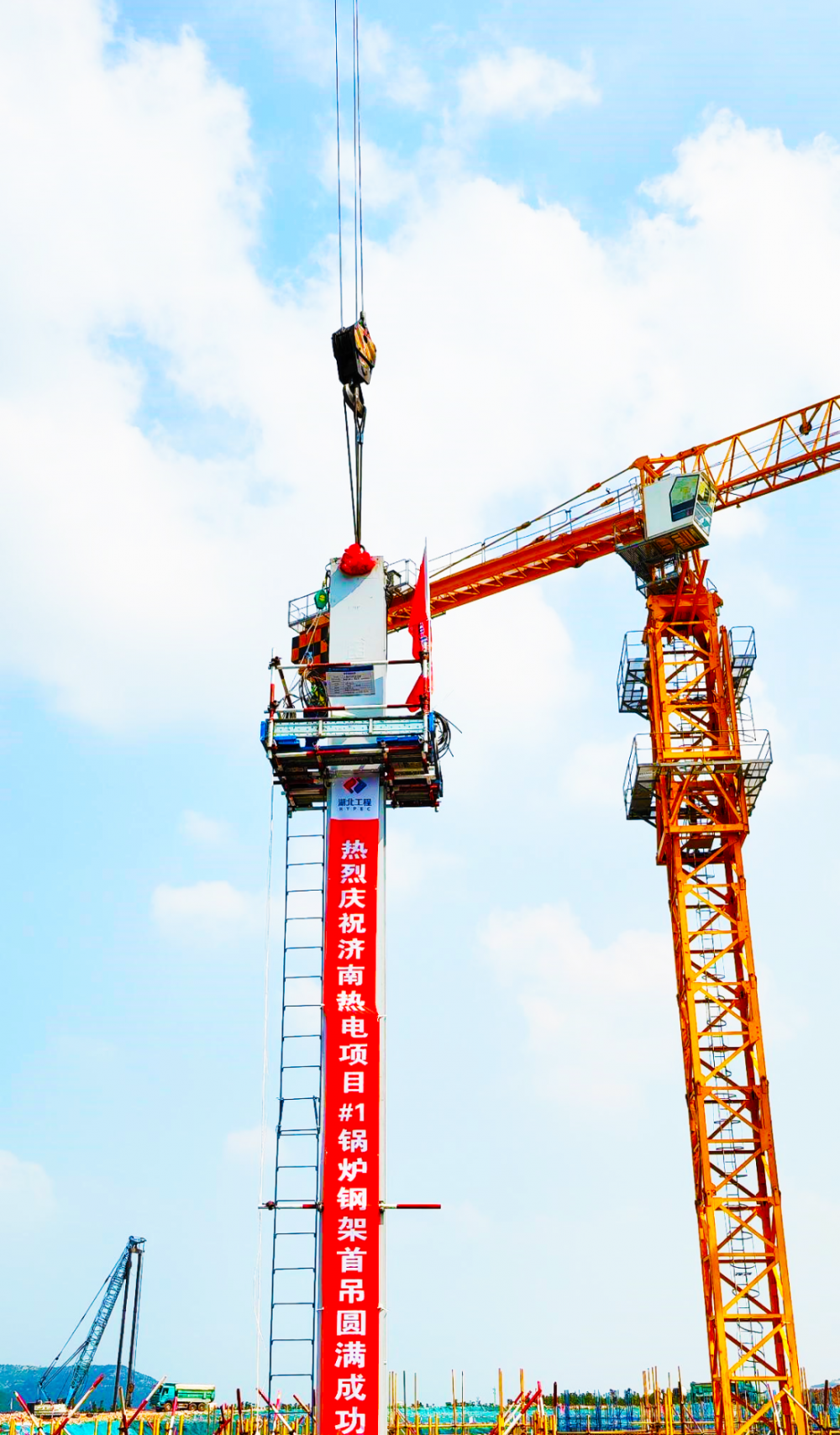 近日,济南热电2×66万千瓦先进燃煤机组供热项目1号锅炉第一根钢架吊装顺利完成,比节点计划9月25日提前40天,具有里程碑式意义。