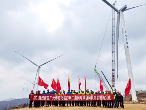 白果二期风电项目机组安装完成意味着项目完成了标志性的一大节点,项目部将以此为契机,严把“安全线”、严守“质量关”,高质、高效地完成全容量并网节点目标。