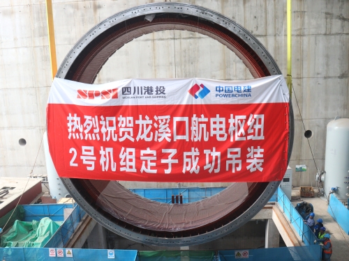 目前,岷江龙溪口航电枢纽已完成2台机组的定子吊装工作,正在进行厂房公用设备、1号2号机组剩余部件的安装及调试,并持续开展后续机电安装工作。