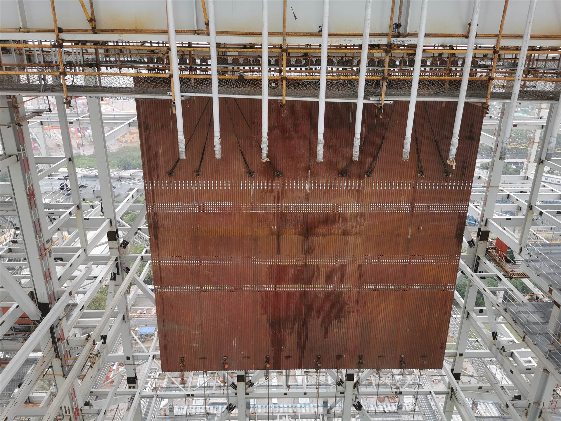 5月26日,由中国能建天津电建承建的福建厦门华夏电力项目5号机组水冷壁第一钩于17时00分开始吊装,18时20分抬吊结束,22时10分到达就位标高97820毫米,5月27日9时18分,吊杆穿装完毕,正式就位。