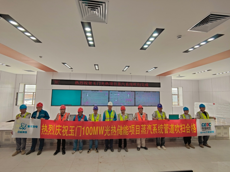 7月3日,由中国能建华中电力试研院负责分系统及整套启动调试的甘肃玉门“光热储能+光伏+风电”示范项目10万千瓦光热储能工程顺利完成过热器、再热器及主蒸汽管道、再热冷段蒸汽管道、再热热段蒸汽管道吹扫工作,为后续调试及并网发电任务奠定坚实基础。