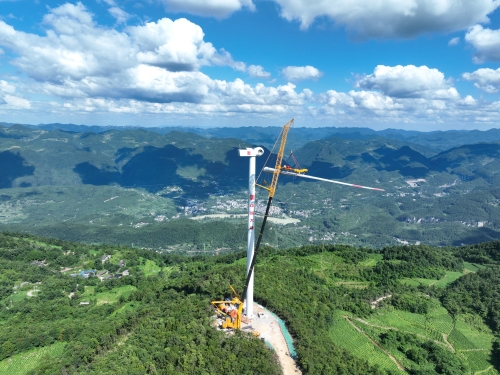 7月22日,由中国水电四局机电安装分局承建的大唐重庆黔江区麒麟二期风电项目顺利完成首台风机吊装,获人民日报报道关注。