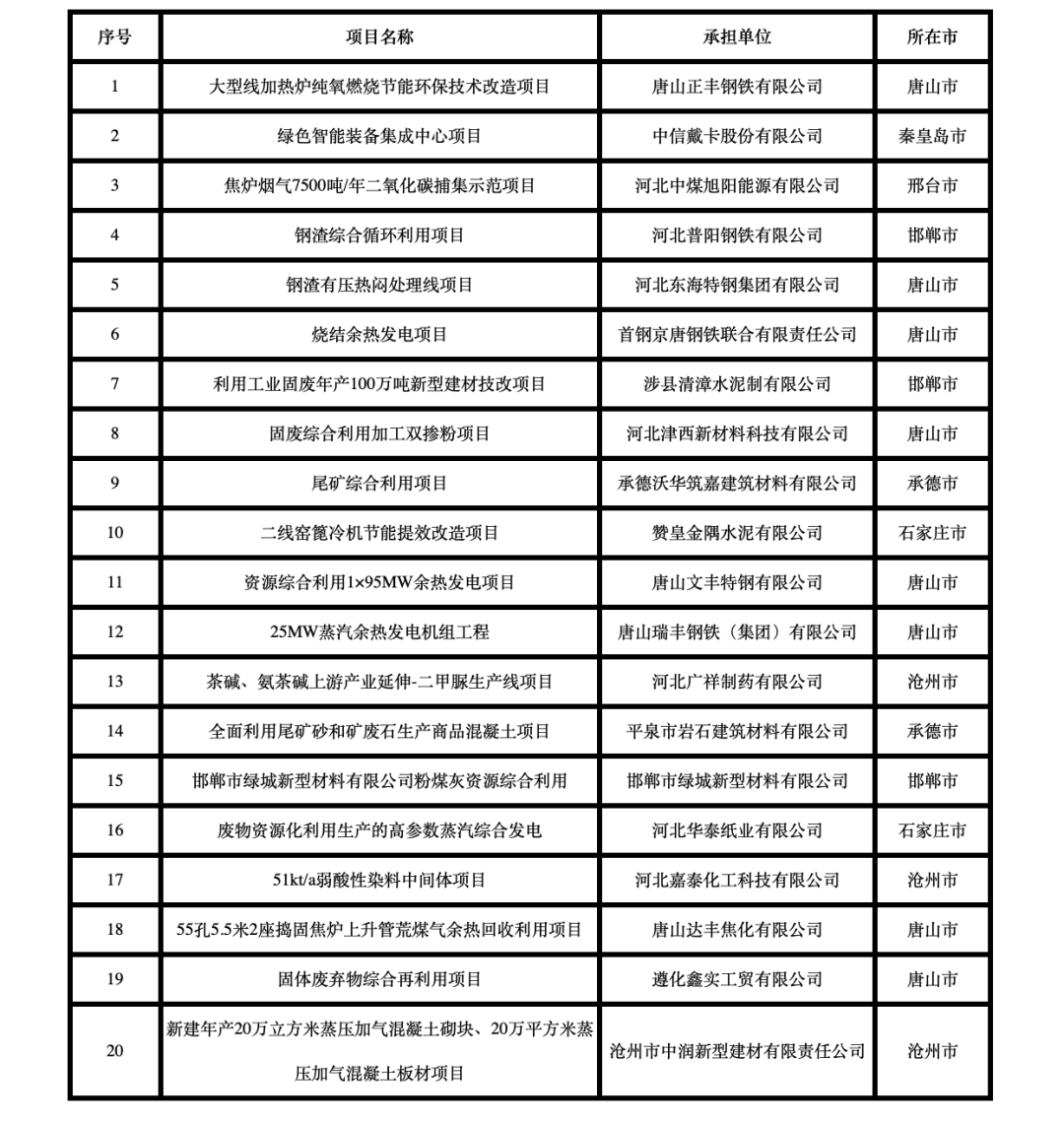 河北省工业和信息化厅关于2022年省工业绿色发展示范项目的公示