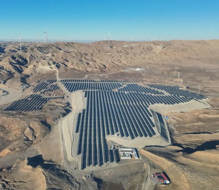 3月13日下午16时46分,由中国能建中电工程华东院总承包的中盐吉兰泰氯碱化工有限公司燃煤自备电厂可再生能源替代项目(以下简称中盐项目)成功实现全容量并网发电,顺利进入试运行阶段。该项目是华东院首个风光储输一体化可再生能源替代示范项目,也是华东院首个全容量并网的山地混塔风电项目。